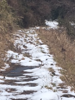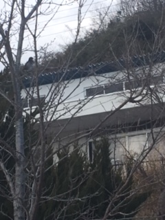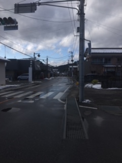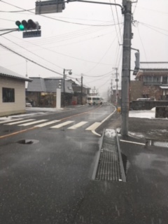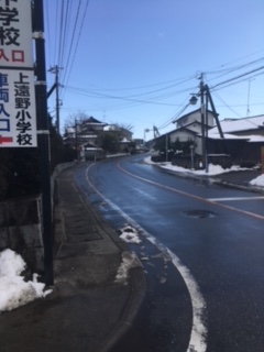 校舎の屋根の雪も溶け、坂の路面も一部乾いてきています。