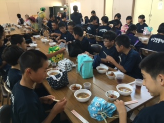 公民館では、婦人会の方が、郷土の味ということで、ジャガイモの味噌炒めと、味噌仕立てのすいとんを振る舞ってくださいました。