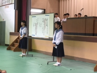 平成29年度後期生徒会役員選挙に向け、朝の選挙活動が行われています。