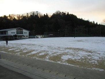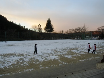 週末の降雪により、校庭には雪がのこっています。