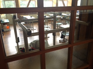 バリケードの作り方は知っていましたが、実際机をひっくり返して積み上げる作業は、華奢な女子にはちょっと大変な作業でした。