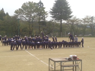 担任が家庭訪問に出かけている間、副担の先生方を中心に、体育祭の練習を行っています。