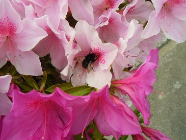 脚に花粉をいっぱいつけて、花から花へと飛び回っていました。