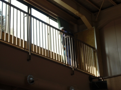 体育館のギャラリーのお掃除です。やりがいあります。