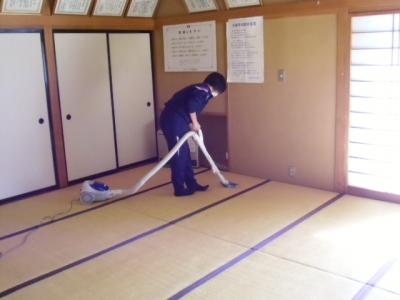 こちらは広い和室を掃除機で。