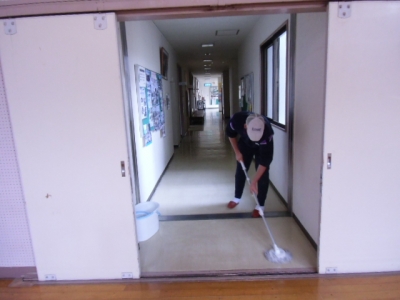 中央廊下をモップがけしました。