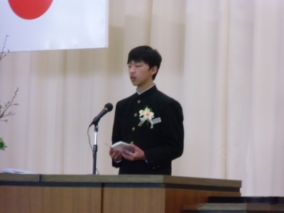 先輩方の心温まるおもてなしに、新入生代表が感謝の言葉を述べました。