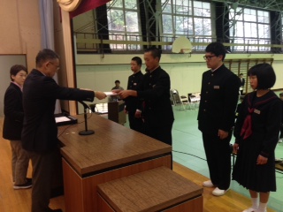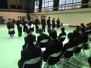 対面式に先立ち、生徒会役員に任命状が伝達されました。