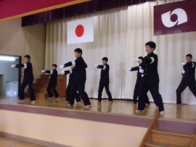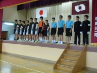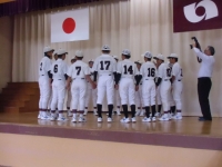 キャプテンが決意を発表し、壇上では全員で気合を入れていました。