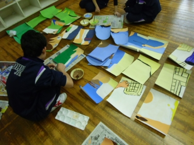 紅葉祭のビッグアート完成に向けて一人一人がピースを作成しています。