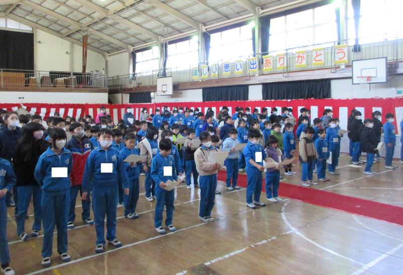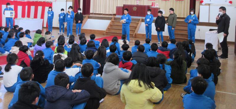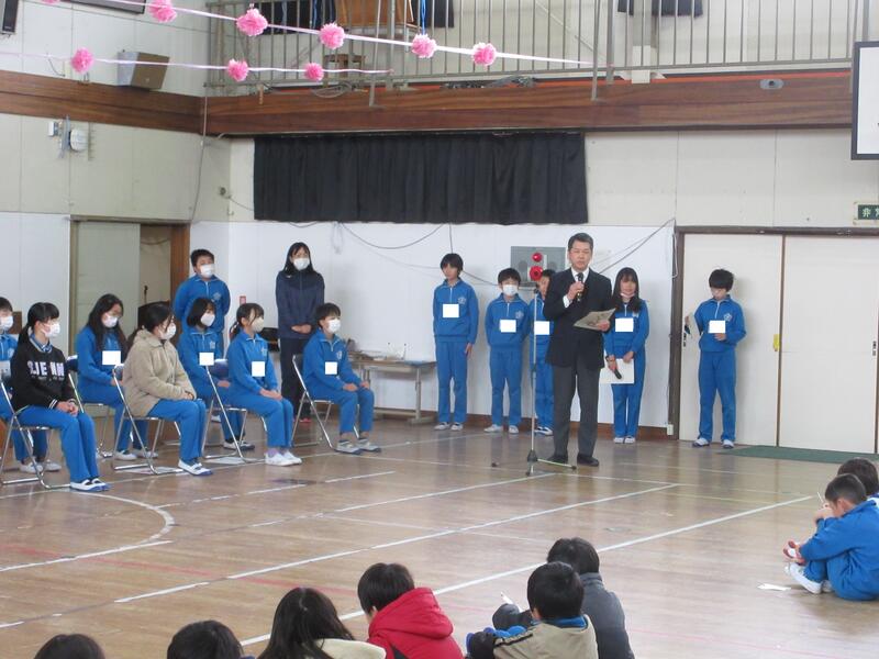 最後に、6年生の代表が、「温かいメッセージは、ぼくたちの力になります。皆さんとの生活は、かけがえのない思い出です。力を合わせて、新たな遠野小をよい学校にしてください。」とお礼を伝えました。