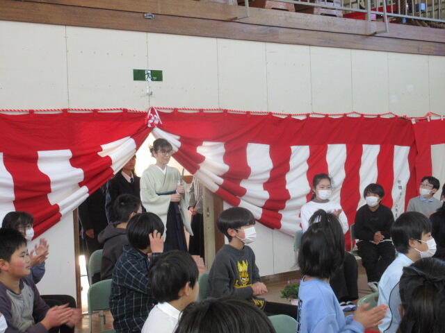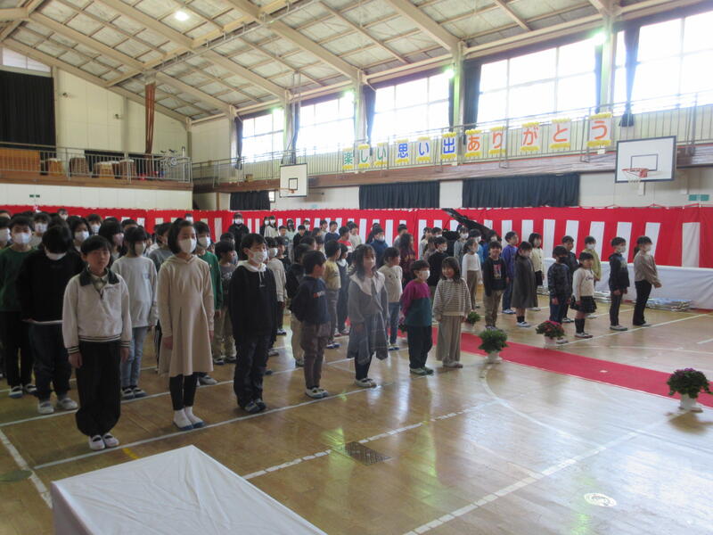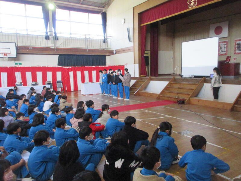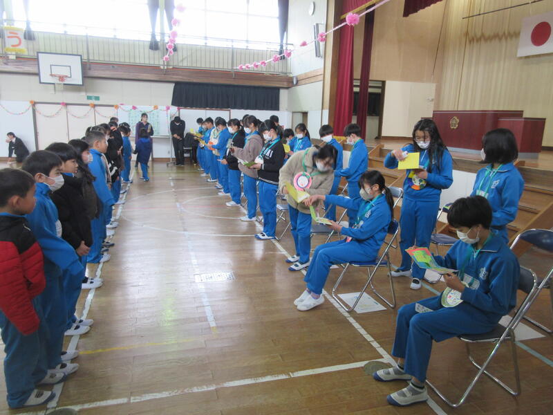 令和6年3月21日(木)、上遠野小学校とのお別れ会を実施しました。4月から上遠野小と入遠野小が1つの学校、遠野小となり、新しい学校がスタートします。上遠野小の児童が、全員一緒に集まれるのは、今日が最後となることから、お別れ会をすることにしました。