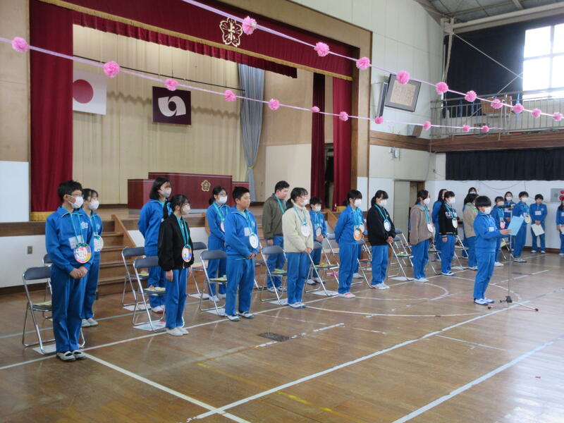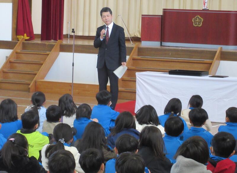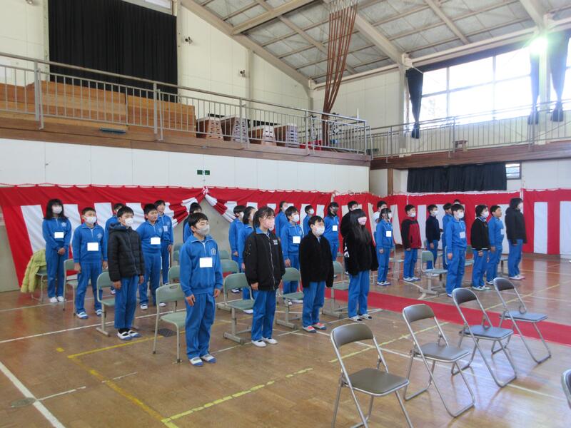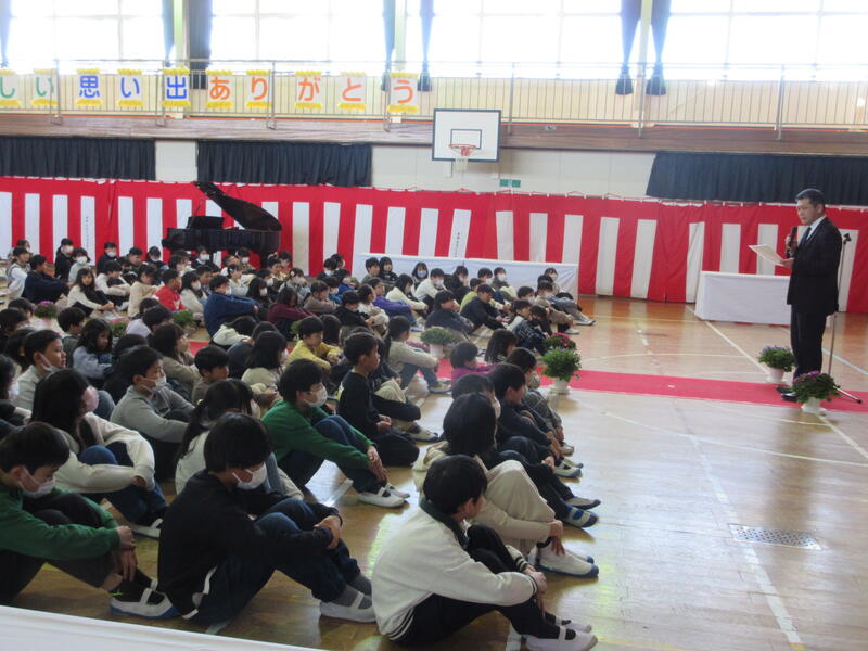 校長より、創立150年の歴史、そして、今年を振り返りました。そして、楽しく学校で生活できたのは、多くの方の応援、協力があったから。上遠野小で勉強できたことを感謝してほしいと伝えました。また、4月からは、新しい生活が待っている。明るい笑顔であいさつを交わし、新しいお友達とも仲良くする。一人ひとりが素直な心で成長してほしいとお話ししました。