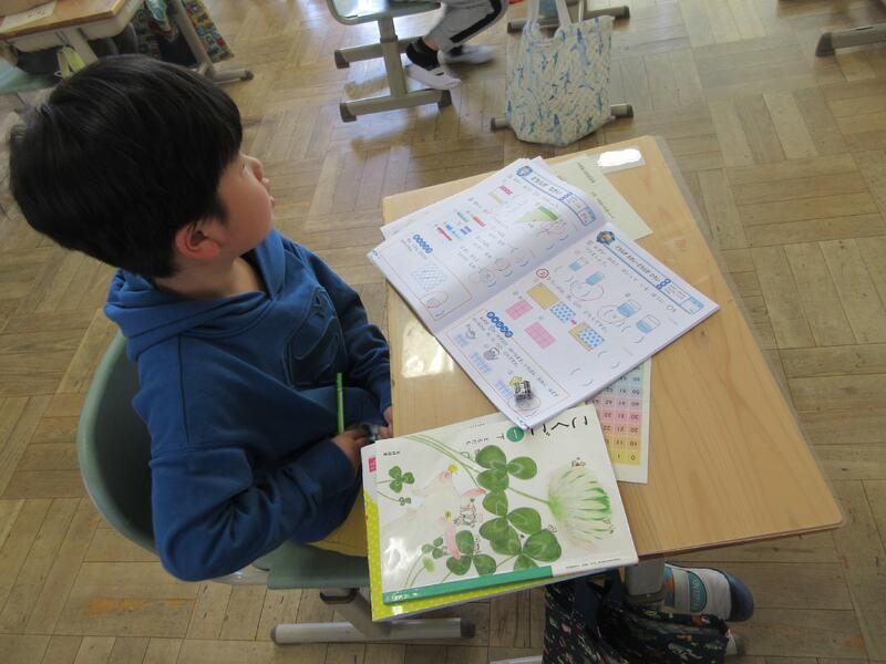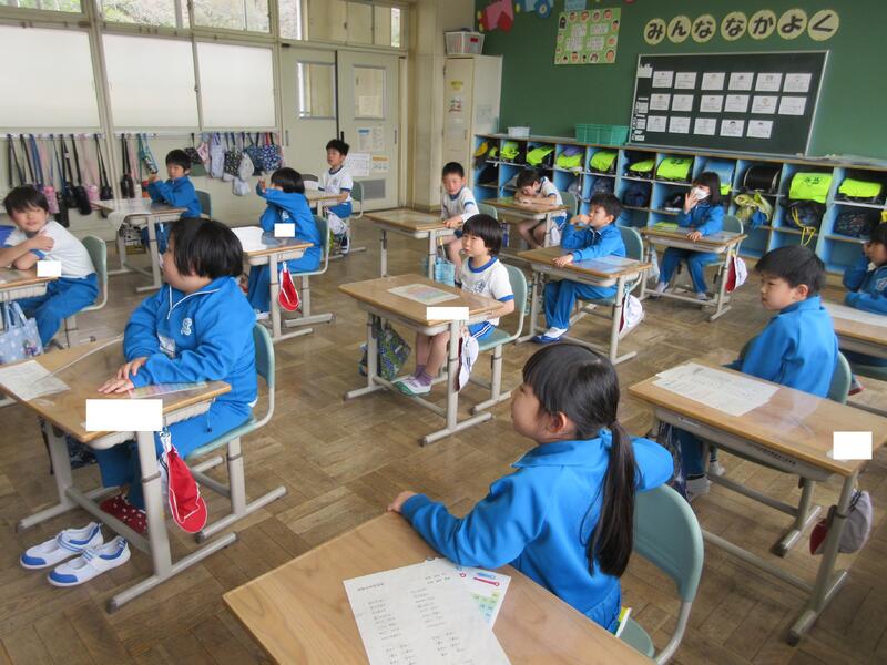 1年生は、体育の授業。まずは、大きなかけ声で、準備運動。そして、運動身体プログラム。基本的な運動を継続し、体力アップを図ります。スキップ、カニさん歩き、ジャンプ、…気持ちよさそうに運動していました。この後、大谷選手のグローブを体験したそうです。