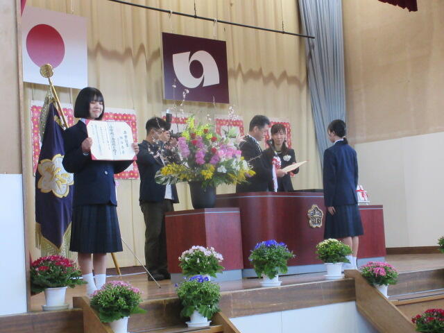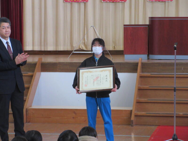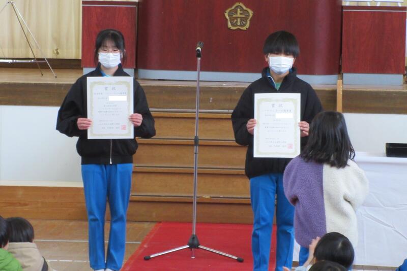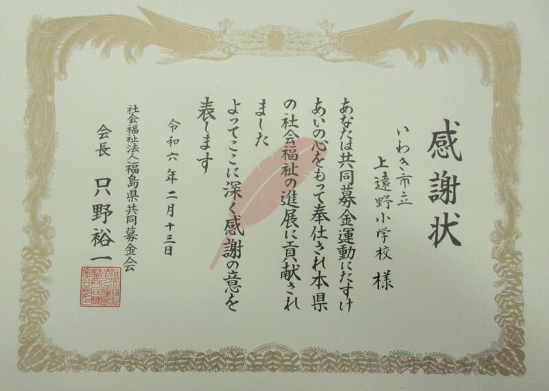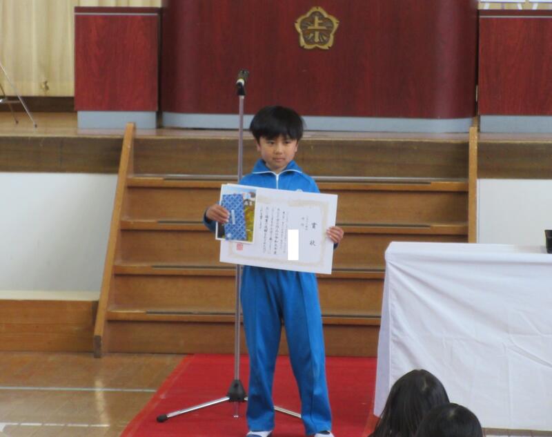 続いて、「ふくしまを十七字で奏でよう」ふるさと部門佳作とノートコンクールとして、工夫してノートをまとめた優秀賞の表彰、赤い羽根共同募金の感謝状の伝達をし、拍手をおくりました。なお、赤い羽根共同募金は、例年、運営委員会が中心になって行っている活動で、長年継続されていることから感謝状をいただきました。
