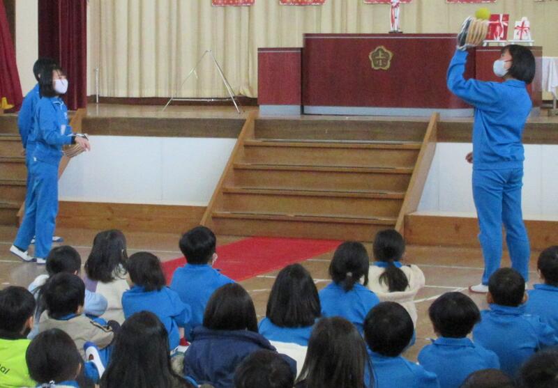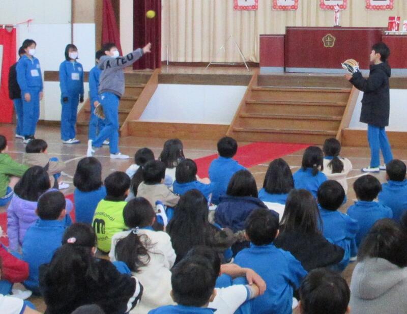 令和6年3月11日(月)、全校集会の後半は、大谷選手寄贈グローブの披露です。まず、教頭から、大谷選手からの手紙「私はこのグローブが、私たちの次の世代に夢を与え、勇気づけるためのシンボルになることを望んでいます。それは、野球こそが、私が充実した人生を送る機会を与えてくれたスポーツだからです。」と紹介しました。早速、6年生の児童が、寄贈されたグローブを使ってキャッチボールをし、笑顔のグローブ披露となりました。この後、順番で、各学年に貸し出します。