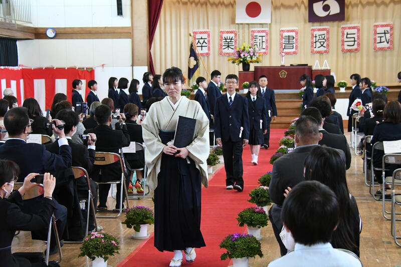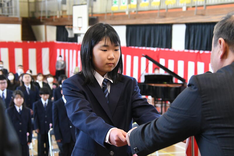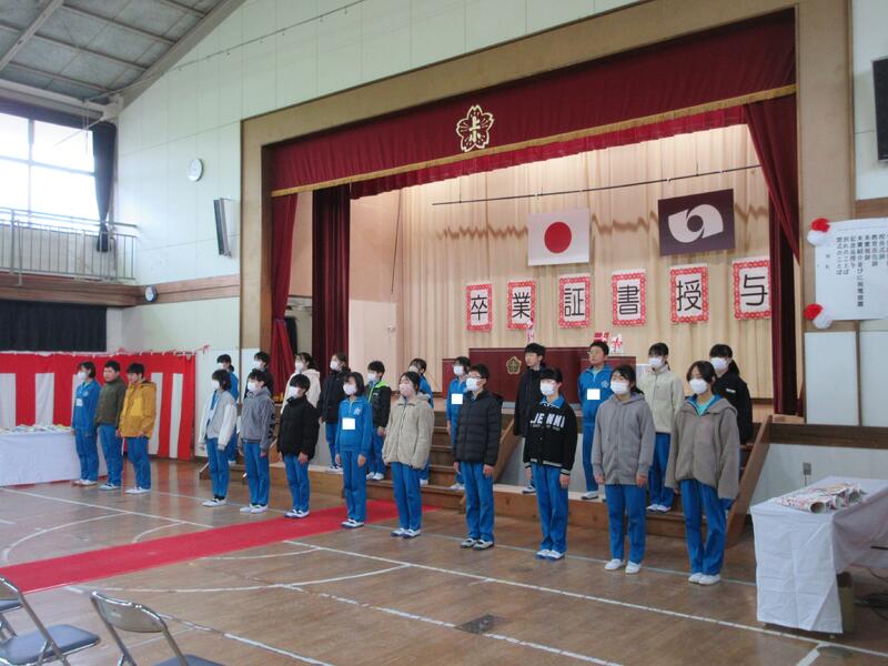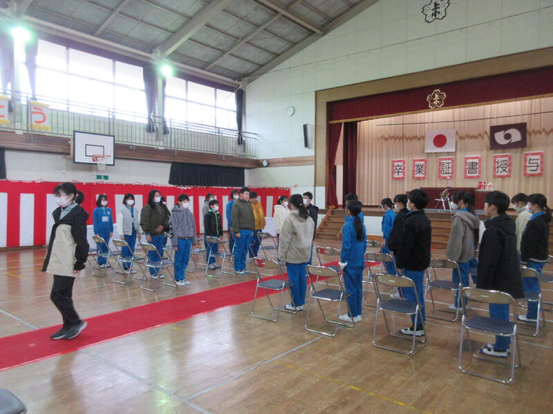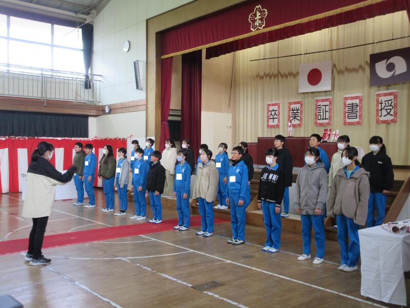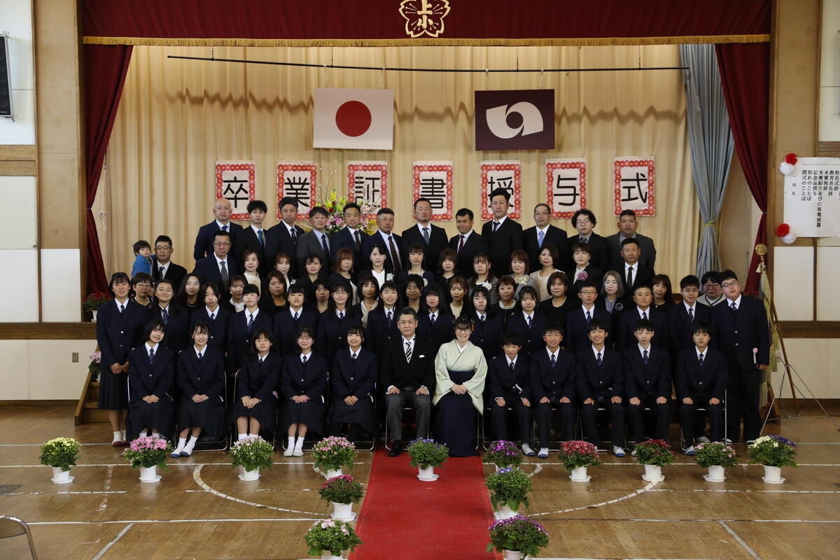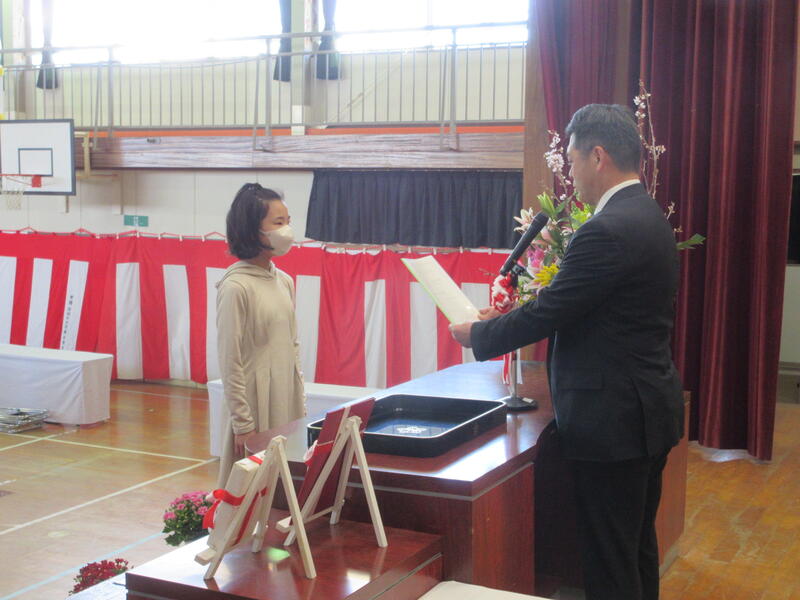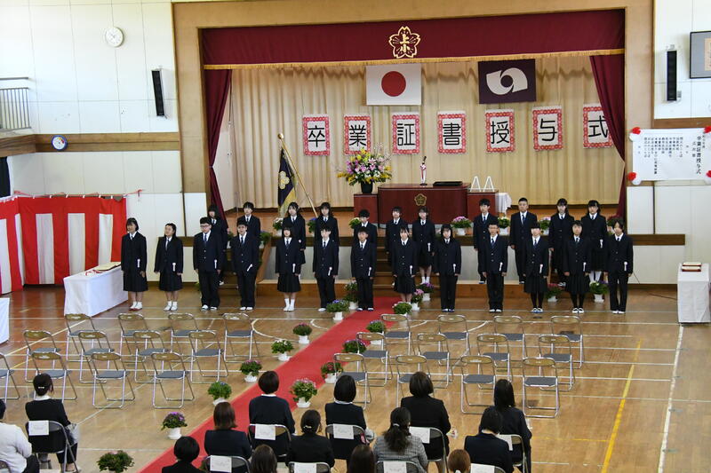 令和6年3月22日(金)、卒業証書授与式を行い、男子9名、女子15名の計24名が学び舎を巣立っていきました。式では、学級担任より一人ひとりが呼名され、校長が卒業証書が授与しました。それぞれの卒業生が感謝の気持ちをこめ、保護者の方に花を渡しました。校長が「卒業生がここまで立派に成長したのは、多くの方の支えがあったから。一番忘れてはいけないのは、お父さん、お母さんへの感謝の気持ち。上遠野小最後の卒業生として、今後の活躍を期待し、3つのお願いがある。①中学校生活の中で、夢や目標を持ち、進路を自分で決める。目標があるからこそ、努力できる。②3つの一番。あいさつ、笑顔、言葉遣い。③3つの心。思いやりの心、感謝の心、自立の心。」と式辞を述べました。また、いわき市教育委員会教育委員様、遠野支所次長様にご臨席をいただき、本校PTA会長様からはご祝辞をいただきました。