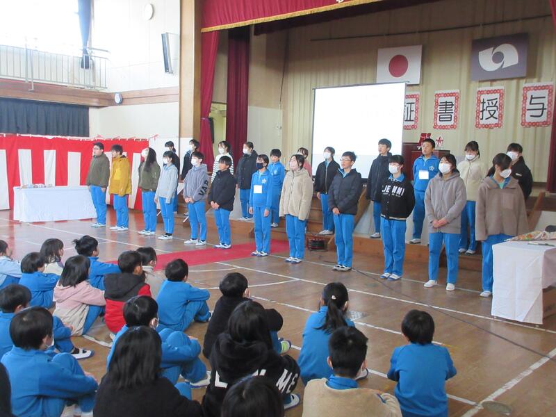 令和6年3月21日(木)、修了証書授与式を行い、代表児童に修了証を授与しました。一人ひとりの修了証と通知票「あすかい」は、明日、学級担任より、お渡しします。どの児童の通知票にも、たくさんのできるようになったこと、頑張ったことが書かれており、子どもたちの成長が感じられました。これまでの学校へのご支援、ご協力に感謝します。