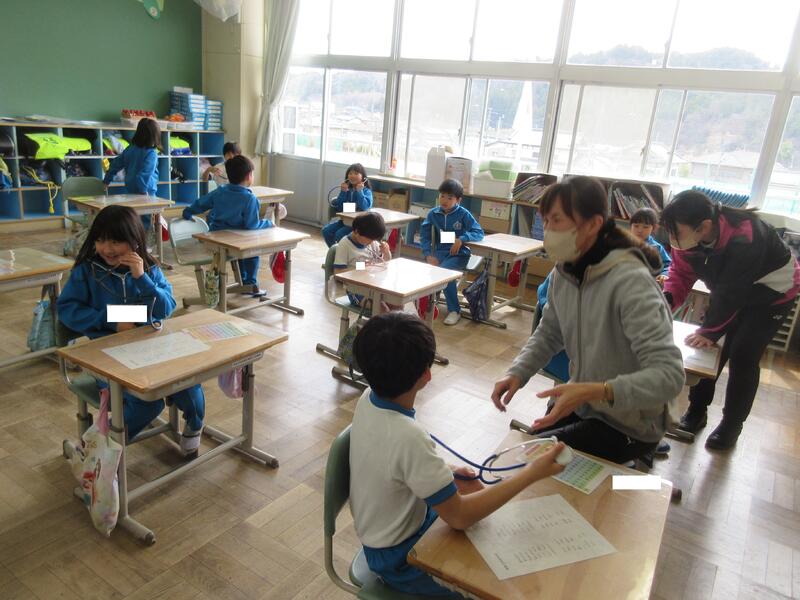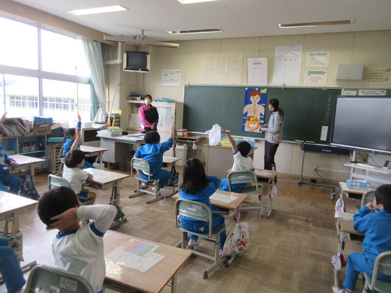 令和6年3月19日(火)、1年生の学級活動で「大切な体と心」の授業を学級担任と養護教諭の2人で行いました。まず、体クイズを通して、胃や腸、肺や心臓など、体の各器官について学習しました。また、自分の心臓の音を聴診器で聴いてみました。続いて、プライベートゾーンについて、絵本の読み聞かせを通して、水着で隠れるところ、自分だけの大切な場所であることをお話ししました。子どもたちは、プライベートゾーンは簡単に人に見せたり、触らせたりしてはいけないこと、むりやり触られたら「嫌」と言うが分かったようでした。最後に、体や心をまもる方法についても考えました。