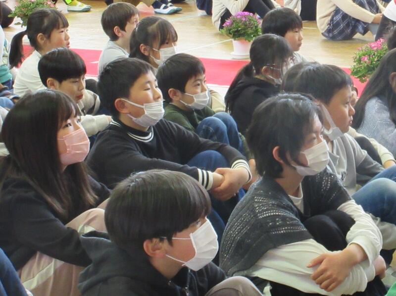 令和6年3月11日(月)、最後の全校集会を行いました。はじめに、校長より、「3月11日は、東日本大震災が発生した日。東北地方でものすごく大きな地震が起こり、巨大津波が沿岸を襲った。多くの尊い命が奪われたことを忘れてはならない。その時、命をかけて避難を手伝った人、復興のために力を尽くす人がいた。」と伝え、全校児童、職員で、起立、黙祷をしました。