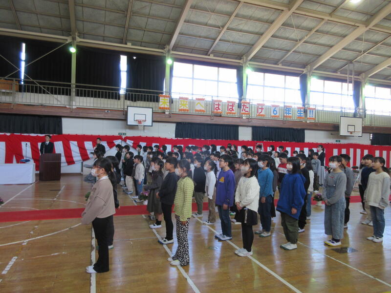 令和6年3月12日(火)、第1回目の卒業式練習を5・6年生で行いました。まず、教務主任が、卒業式の進め方と式に臨む態度の説明をしました。その後、実際に起立、礼や拍手の仕方、入退場を練習しました。また、最後に、ピアノに合わせて校歌を歌い、卒業式が近づくのを実感しました。心を込めて式歌を歌い、思い出に残る卒業式にすることを期待します。