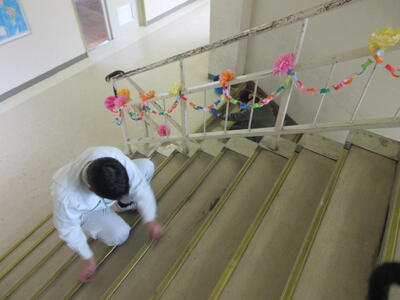 午後は、保護者の方にご協力いただき、ボランティア清掃を実施しました。東側の階段を中心に、床磨きを行いました。なかなか汚れが落ちにくく苦労しましたが、少しずつきれいになりました。平日にもかかわらずご協力いただいた保護者の皆様、ありがとうございました。