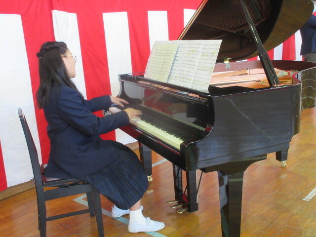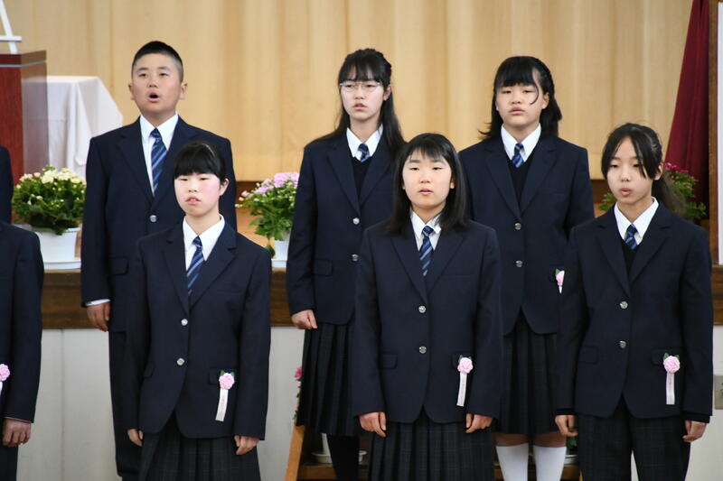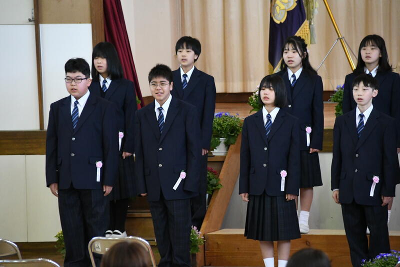 続いて、在校生で参加した5年生と卒業生が呼びかけで楽しかった小学校生活を振り返り、心を込めて式歌を合唱しました。式が終わりに近づくにつれ、笑顔の中にも、今までの思いがこみ上げてくるようでした。厳粛で感謝の心にあふれた卒業式になりました。