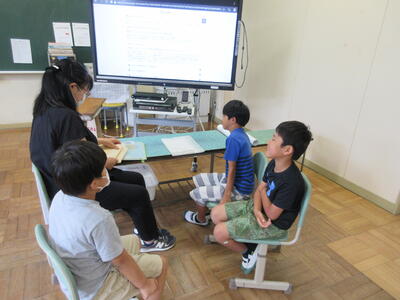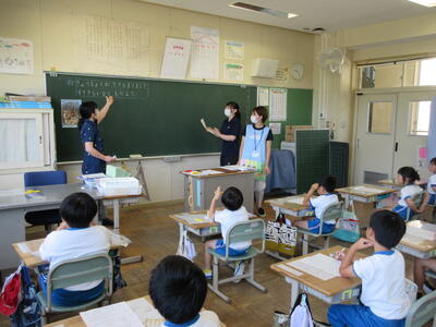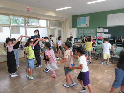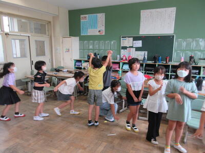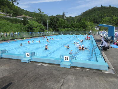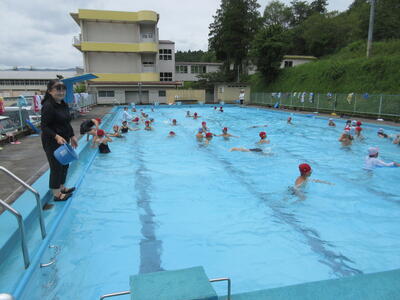 令和5年7月14日(金)、3・4年生の水泳は、今日が最後となります。流れるプールで気持ちよさそうに潜ったり、泳いだりしていました。途中、先生が準備した水中の輪くぐりを楽しむ姿も見られました。水泳学習をするにあたって、保護者の皆様には、健康観察、水着等の準備で大変お世話になりました。
