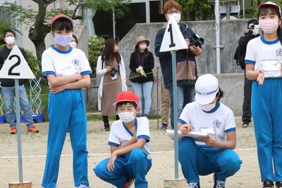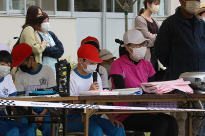 令和4年5月15日(日)、運動会では、5・6年生は、出発合図、審判、準備、記録、招集、放送、救護、看護の係を担当しました。その一部を紹介します。それぞれの役割を責任を持って果たしてくれました。