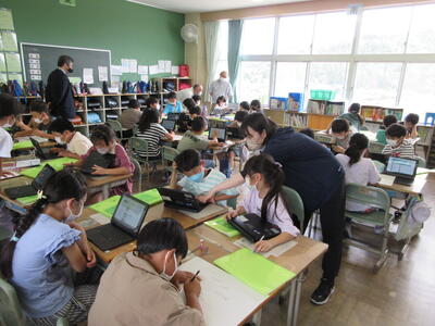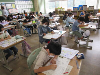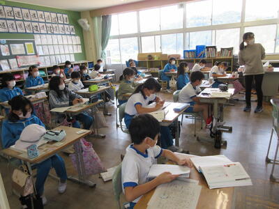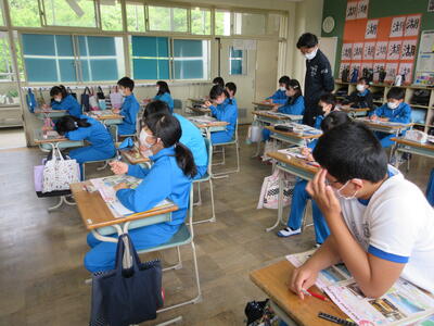5年生は、担任の先生が出張のため、自習でした。とても静かに学習できています。