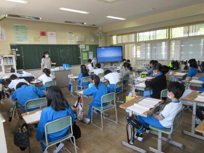 令和4年5月23日(月)の授業の様子です。6年生は外国語(英語)の授業でした。世界の子どもたちの学校生活について、英語の説明を聞き取ります。ちなみに、ナイロビ(ケニア)の小学校は、月曜日から金曜日まで8校時、土曜日も5校時でした。たくさん勉強していますね。