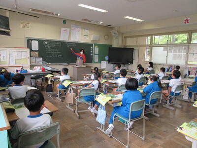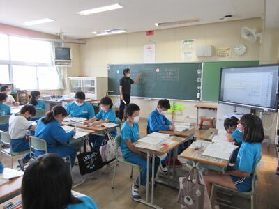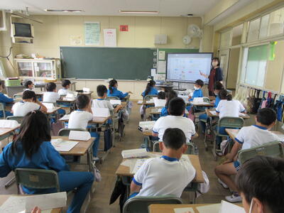 3年生は国語です。「もっと知りたい、お友だちのこと」というテーマで、自分のことを伝え合い、お友だちのことを理解する授業でした。「家で飼っているインコの〇〇です。…」しっかりと伝えていました。お友だちのことがよく分かると、仲良くなれますね。
