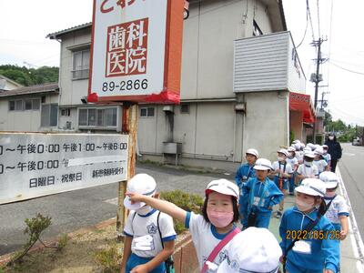 令和4年5月26日(木)、2年生で町探検をしました。生活科の授業です。まず、教室で、町のお店で知っていることを説明し合いました。その上で、実際に町を探検し、どんなお店で、どんな人が働いているか確かめます。今日は探検の練習です。後日、本番となります。町を知ると、自分の住んでいる町が好きになりますね。