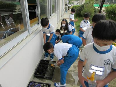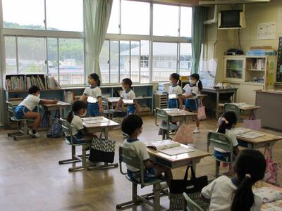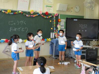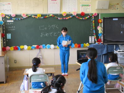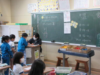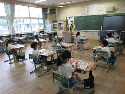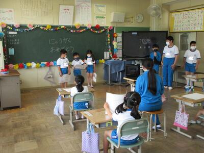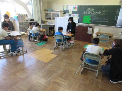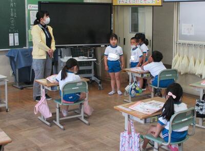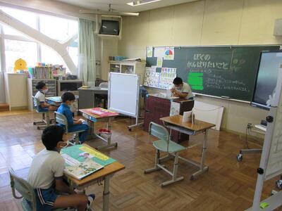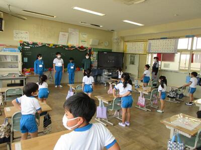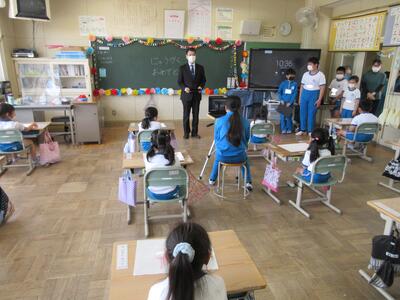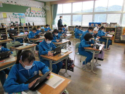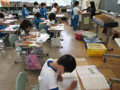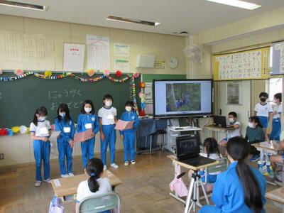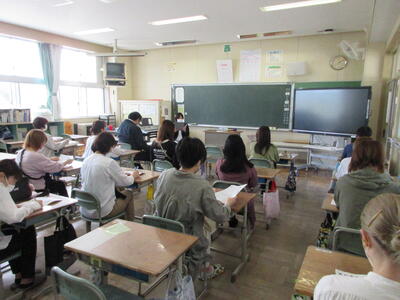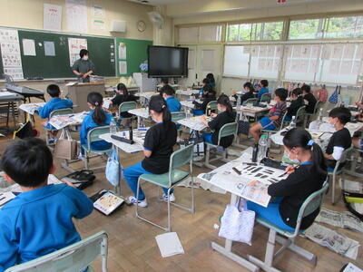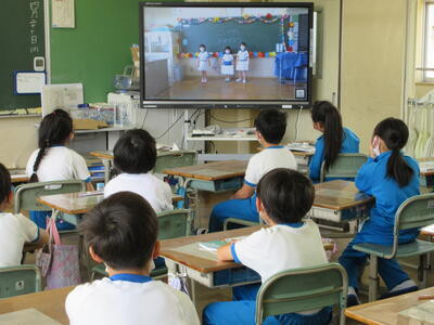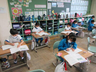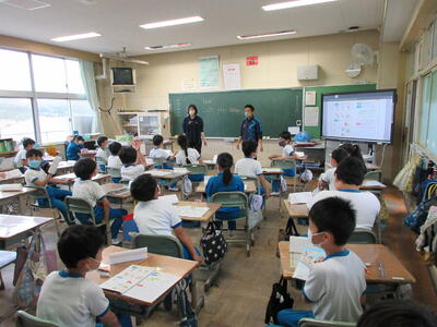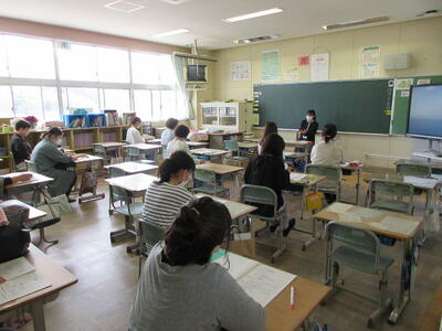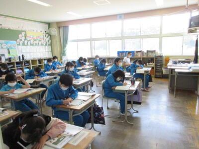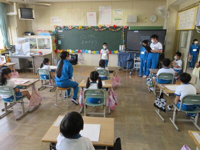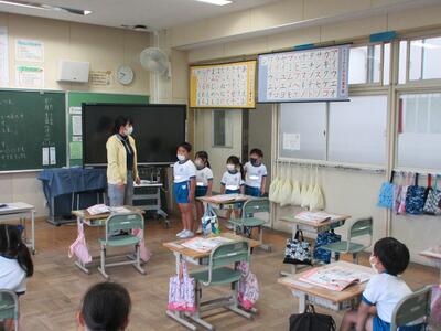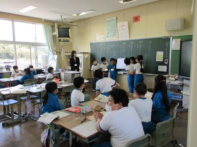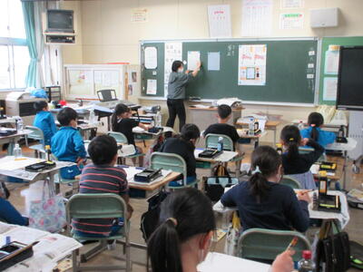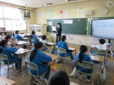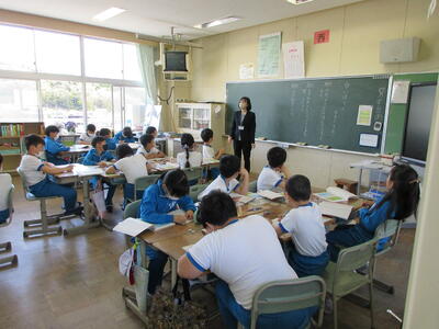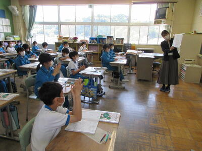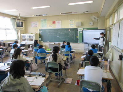 4年生は、外国語活動で、「Hello! Let's play ~.」の学習でした。英語での活動を楽しんでいます。小学校で英語の学習をしていることから、中学校1年生の英語のレベルが以前より、高くなっています。小学校の内に、英語に親しむと共に、知識・技能を身につけることが必要になっています。