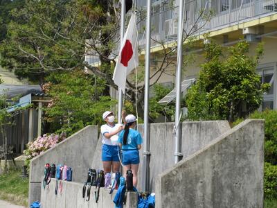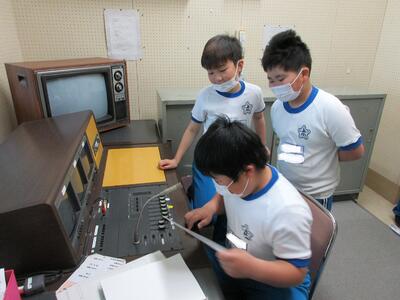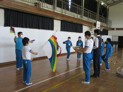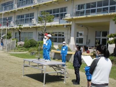 令和4年5月2日(月)、朝の活動の様子です。2年生の教室では、運動会の1・2年生の種目「みんなアロハ」で使うレイをつくっていました。競技で使う道具を自分たちでつくっています。すごいですね。放送室では、放送委員が朝の放送を行っています。「全校生の皆さん、おはようございます。今日は、5月2日、月曜日です。今日の予定は、…」朝のあいさつで、気持ちよく1日がスタートします。