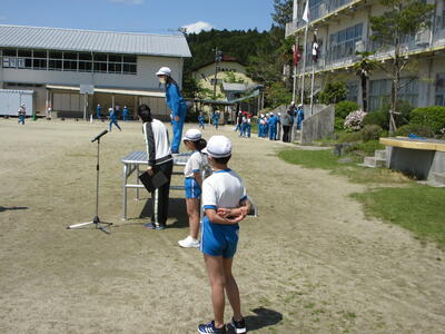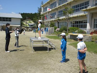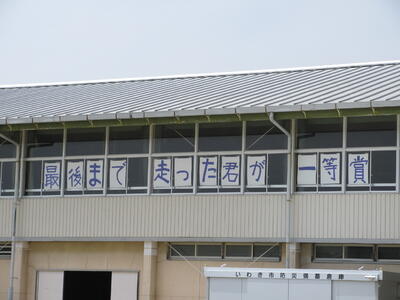 「最後まで 走った君が 一等賞」は、令和4年度上遠野小学校運動会のスローガンです。6年生の女子児童が考えてくれました。たとえ、誰かに勝てなくても、競技で最後になってしまっても、最後まで全力で頑張れることが大事との思いがこもっています。素晴らしいスローガンだと思います。児童一人一人が自分自身に一等賞を贈れるような運動会にしましょう。