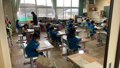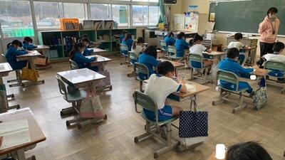 先日いわき市小学生書写展があり(展示形式はコロナ禍のため行わず審査のみ)、各学年の代表2名の作品、合計12点を出品していましたが、この度審査が終わり、作品が学校へ戻ってきました。