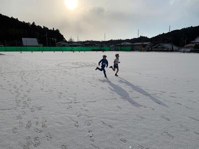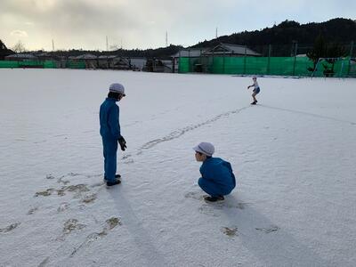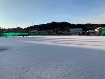 昨夜からの雪で、本校校庭にも積雪がありました!(1cm未満ですが…)。その雪のせいか、始業前の「体力作りランニング」に取り組む児童もいつもよりとても少なくて寂しい感じでした。