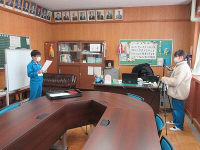 今日は、大休憩に全校集会が行われました。新型コロナウイルスの感染が拡大していることからリモートで行いました。