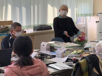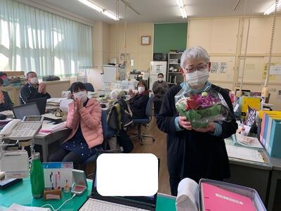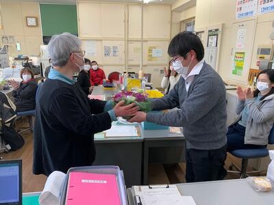 昨日は退勤前に職員室で「感謝の会」を行い、先生方からお世話になったお礼に花束をプレゼントしました。(1年生も折り紙の作品など素敵なプレゼントを贈りました!)。