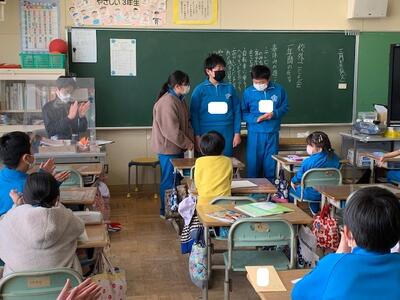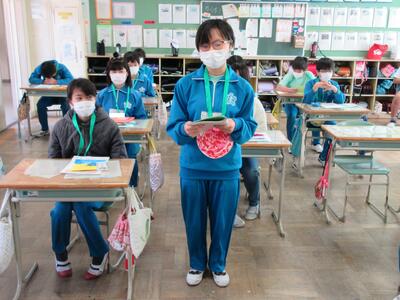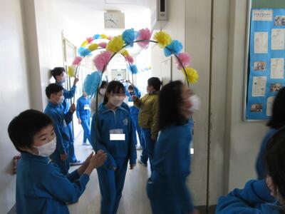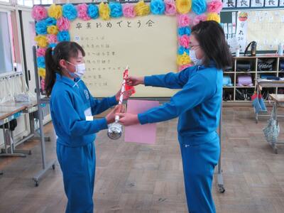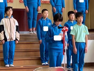 会の中では、各学年から「卒業おめでとうございます」というお祝いの言葉や「中学校に行っても頑張ってください」などの励ましの言葉が贈られました。