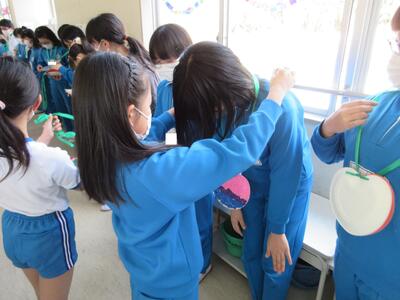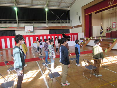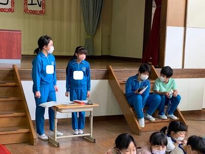 最後に6年生から「伝統を守っていってください」「ありがとうございました」とお礼と励ましのことばがあり、会が終わりました。全校生が心温まる時間になりました。