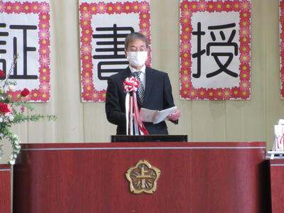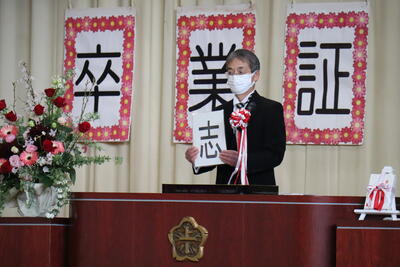 校長先生からの祝辞では、「志」「愛」「忍」の3つの心を大切にこれからも頑張ってほしいというお話がありました。何にでも恐れずにチャレンジし、誰にでも優しく接し、時には我慢も大切に、これからの人生を力強く生きてほしいという願いが込められたお話でした。