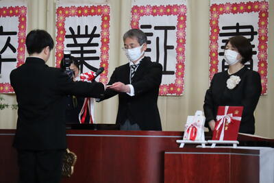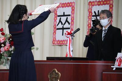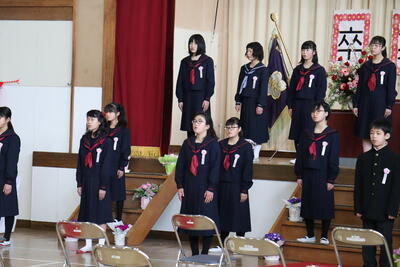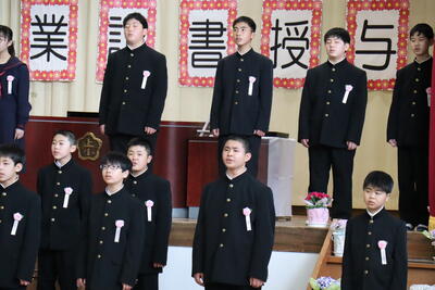 昨日23日(水)には、「卒業証書授与式」が行われました。厳かな雰囲気の中、21名の卒業生が校長先生から証書をいただきました。証書をいただいた後、卒業生一人一人から「どんな大人になりたいか」希望と抱負の発表があります。そこでは「信られる大人になりたい」「誰からも頼れる大人になりたい」など、それぞれの思いを堂々と発表する姿がありました。