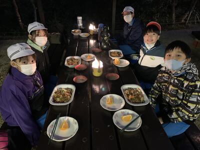 夕食が完成しました。みんなと力を合わせて作った焼きそばの味は、最高でしたね!
