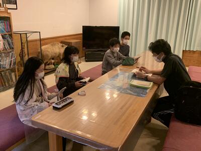 今日最後の活動は班長会議です。各班ごとに今日の活動の反省を行ってから、各班長がその内容について担任の先生と確認し合っていました。