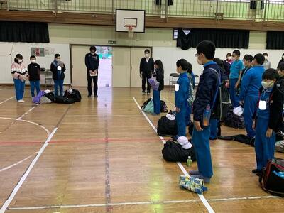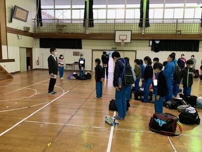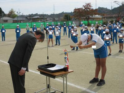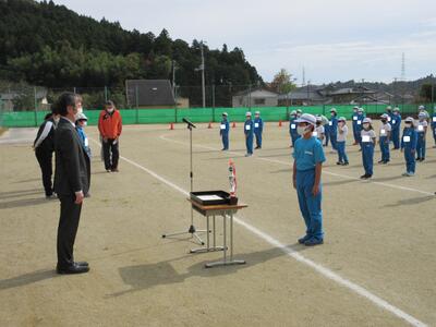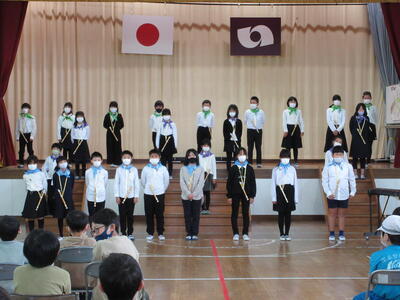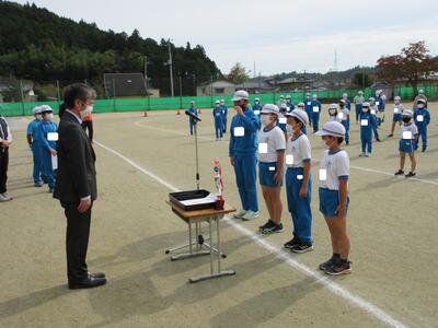 午後3時過ぎ、無事学校に到着し、先生方に出迎えを受けながら最後のプログラム・「帰校式」を行いました。