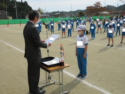 夏休み中の課題も含め、子どもたちは様々な作品を作り、各種コンクールに出品してきました。その中で「いい作品」を作り上げた児童に表彰状が届いたというわけです。校長先生から表彰状を手渡された児童は、少し恥ずかしそうではありましたが、堂々と自信に溢れていました。