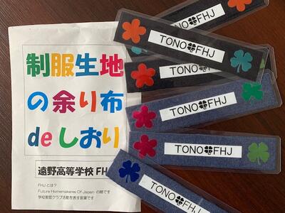 遠野高校家庭科クラブさんは、学生服メーカーさんからいただいた余り布の有効的な活用について研究しています。その活動の一端として、毎年本校一年生に「読書用しおり」がプレゼントとして届くのです。