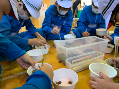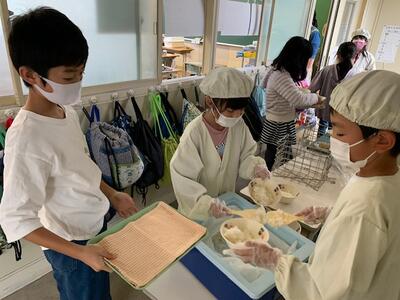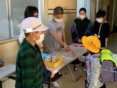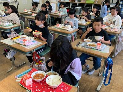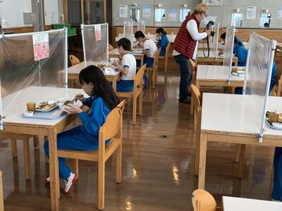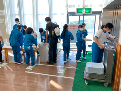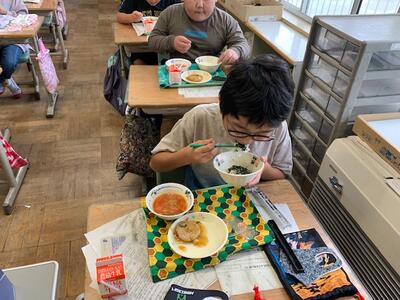 「ごはん、すごくおいしい!」「おいしいけどごはんにはやっぱり味噌汁がいいなあ…」「ごはんに海苔、最高です!」と、いろいろは感想を聞くことができました。感染対策を継続しながら食育に関しても指導をしていきたいと考えています。
